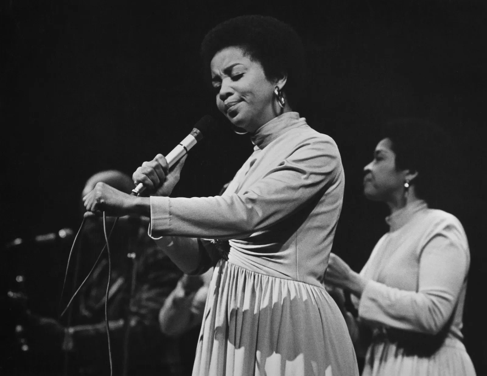 Mavis Staples performing with the Staple Singers at Harlem’s Apollo Theater, New York City, 1975. Photo by Sue Cassidy Clark/FPG/Archive Photos/Getty Images via The New York Review
